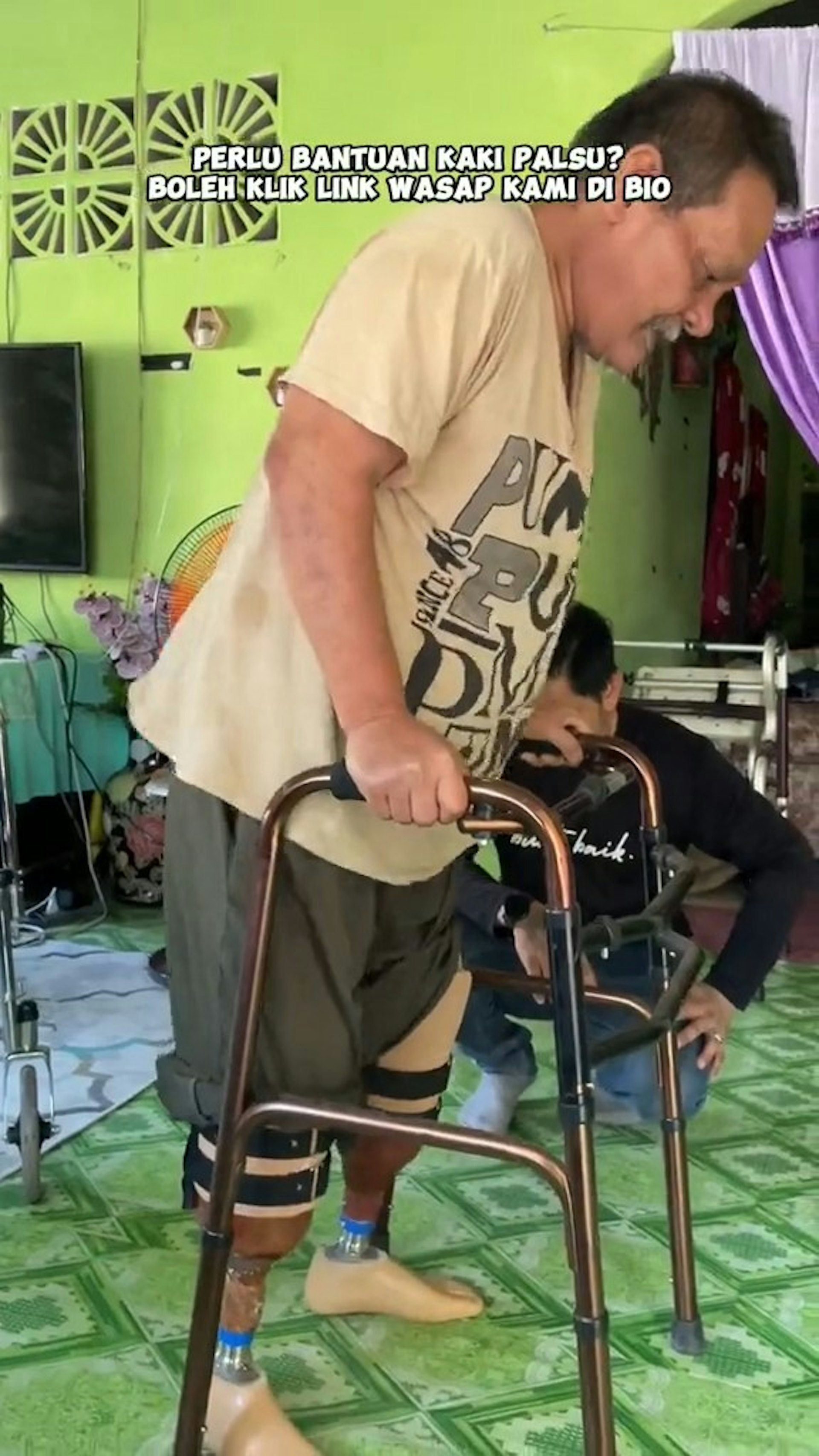 經歷失去雙腿的痛苦後,男子勸告社會大眾,不要過量飲用汽水,以免危害健康。(TikTok@kedidi_kakipalsu)