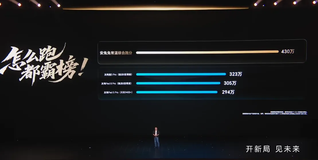 L- D: q( I$ @ HONOR MagicPad 3 Pro 是全球首款搭載 Snapdragon 8 Elite Gen5 處理器的平板。該處理器為 3nm 製程工藝打造,CPU 為 2粒 4.61GHz 超大核 + 6粒 3.63GHz 大核的八核心設計,GPU 集成全新 1.2GHz 的 Adreno840。HONOR MagicPad 3 Pro 室溫安兔兔跑分超過 430萬,是當前 Snapdragon 8 Elite Gen5 平台跑分最高的裝置。7 ?9 d& _+ h/ N1 b- u5 U9 R